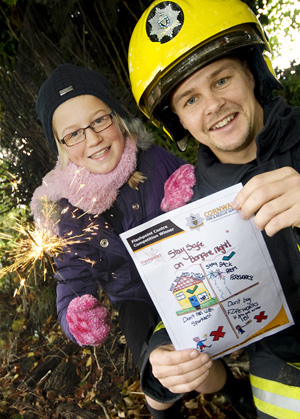 Eleven year old Megan Moore from St Stephens Community Primary School in Launceston is celebrating after winning a competition to design a poster to help Cornwall Fire and Rescue Service raise awareness of the importance of being safe around fireworks and bonfires in advance of this year’s celebrations.
