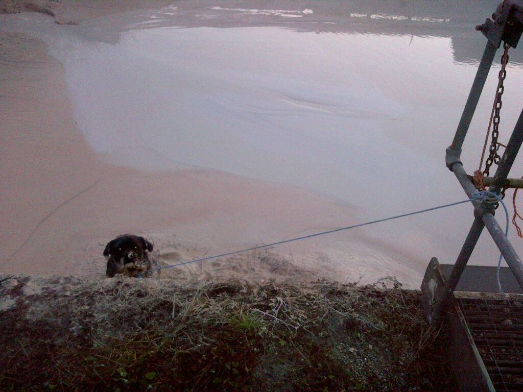 A crew from St Dennis Fire Station, special water rescue crews from St Austell and a rope rescue crew from Bodmin attended a dog trapped in a clay settling tank, yesterday afternoon.