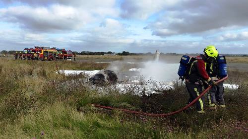 On receipt of this call stating that a light aircraft had crashed, appliances were mobilised from Perranporth, Newquay and Truro also the rescue tender from Tolvaddon. The aircraft, a Piper Warrior, had landed safely and it was confirmed that everyone was out of the aircraft, on arrival the plane was well alight, firefighters used foam at the incident to extinguish the fire. Ambulance were in attendance.