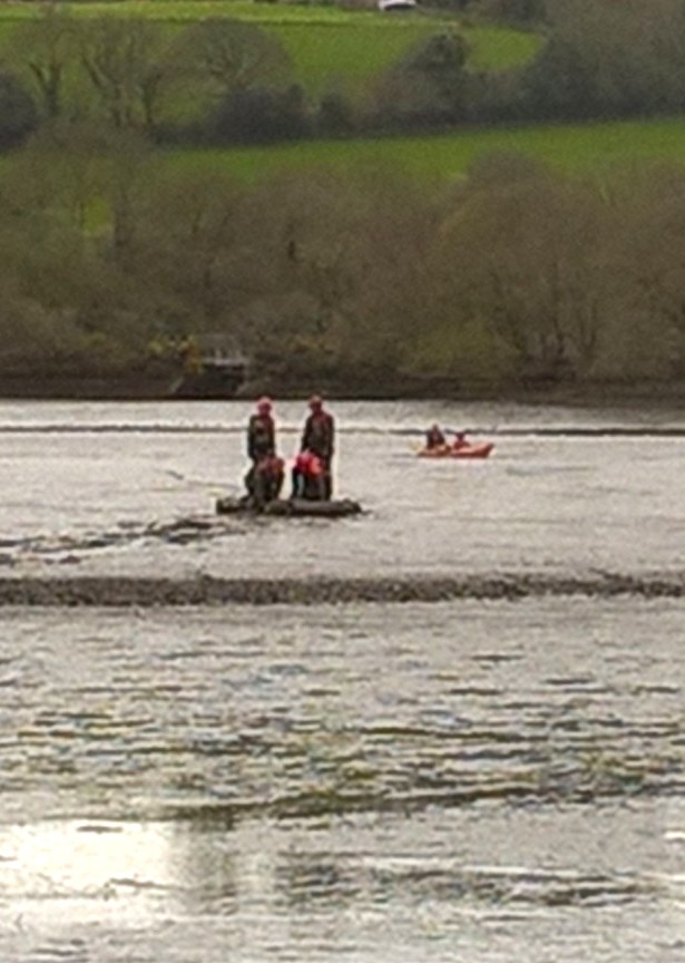 At this current time the Fire Service are involved in the rescue of two people in a kayak stuck in mud at low tide on the River Fowey near St Winnow.
