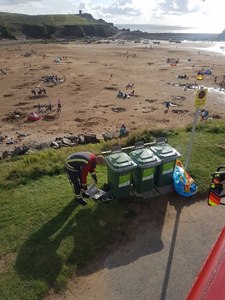 After crews dealt with the incident above they spotted two BBQ's by the recycling bins which were still very hot - so they cooled them with two buckets of water.