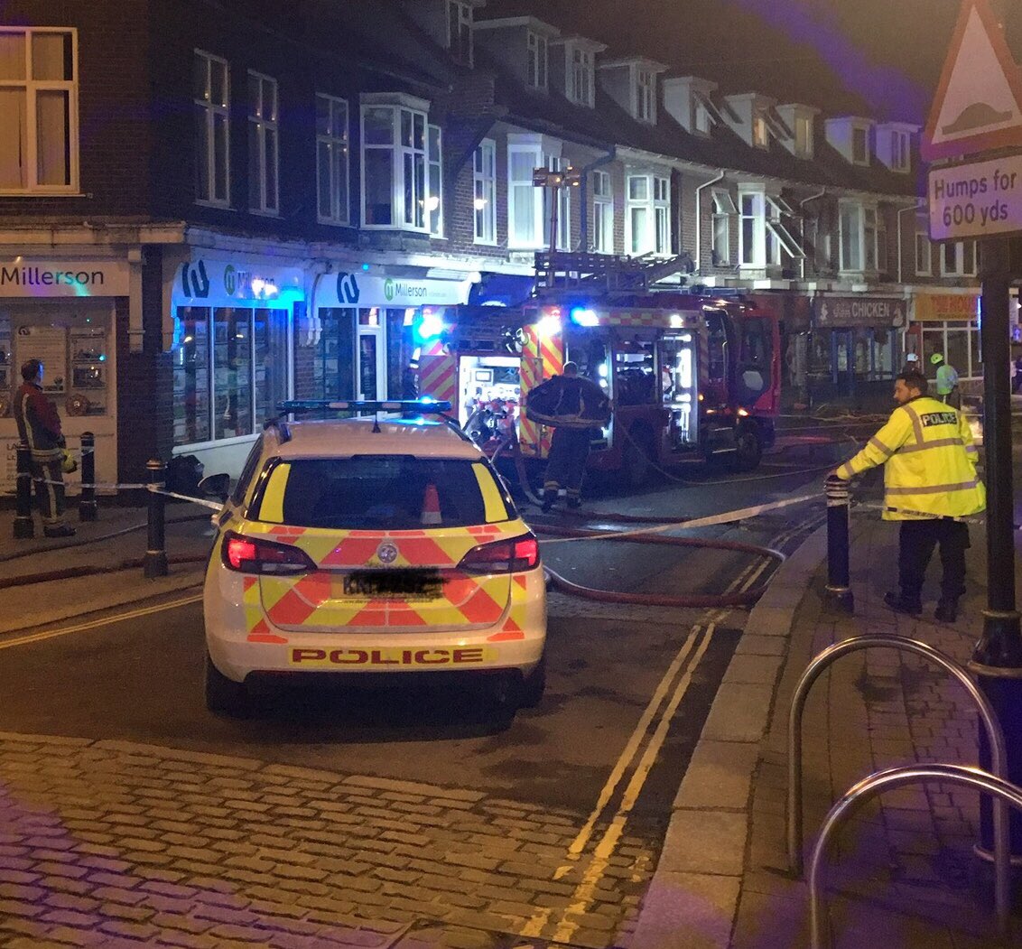 Update at 0001hrs: The fire has been extinguished and the property checked for fire spread. A ground floor salon area has been damaged by fire and flats above damaged by smoke. An investigation into the cause of the fire will continue later in the morning. One Tolvaddon fire crew remain in attendance and all other fire crews have now left the scene.