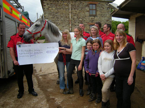 Pauline Bolton, of the stables said, “We are delighted to be presenting this cheque to the Firefighters Charity. Without these firefighters we would have lost one of our horses so all of the staff, children and friends of the stables worked very hard to raise as much money as possible to show them our appreciation.”